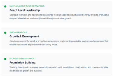 Decades of hands-on experience across multiple sectors, combined with a proven methodology that cuts through complexity.